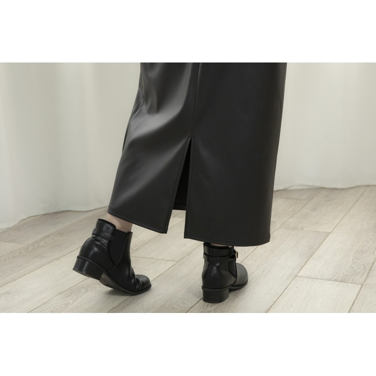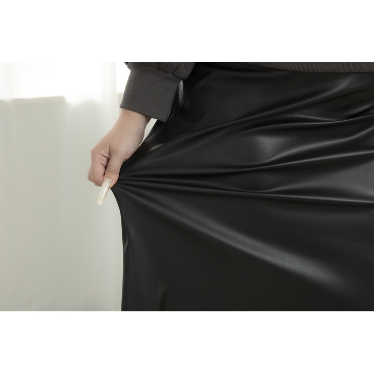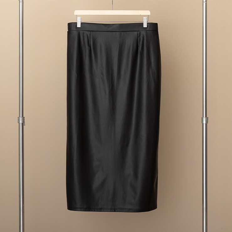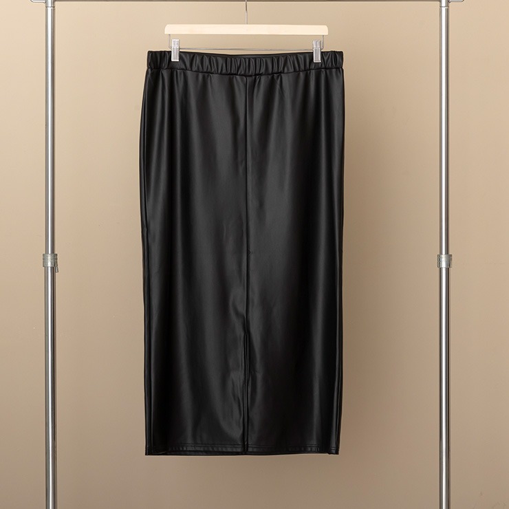 モードな印象を演出する、フェイクレザー素材のロングスカート。