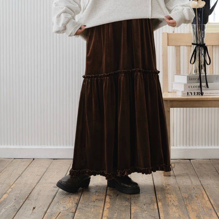 同シリーズのベロアビスチェと合わせてティアード風にも楽しめる万能アイテムです。