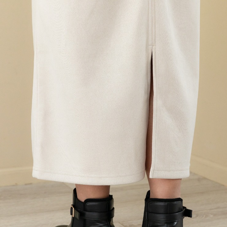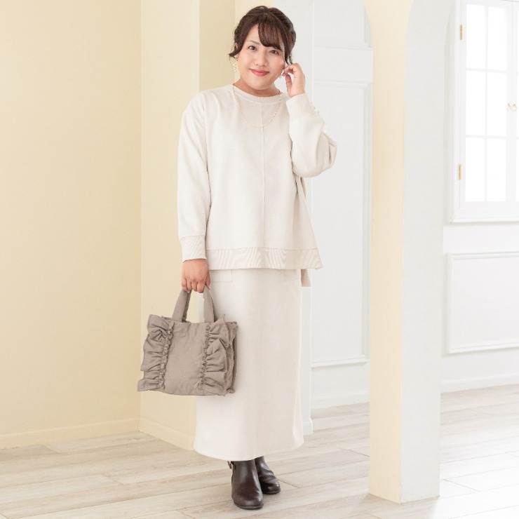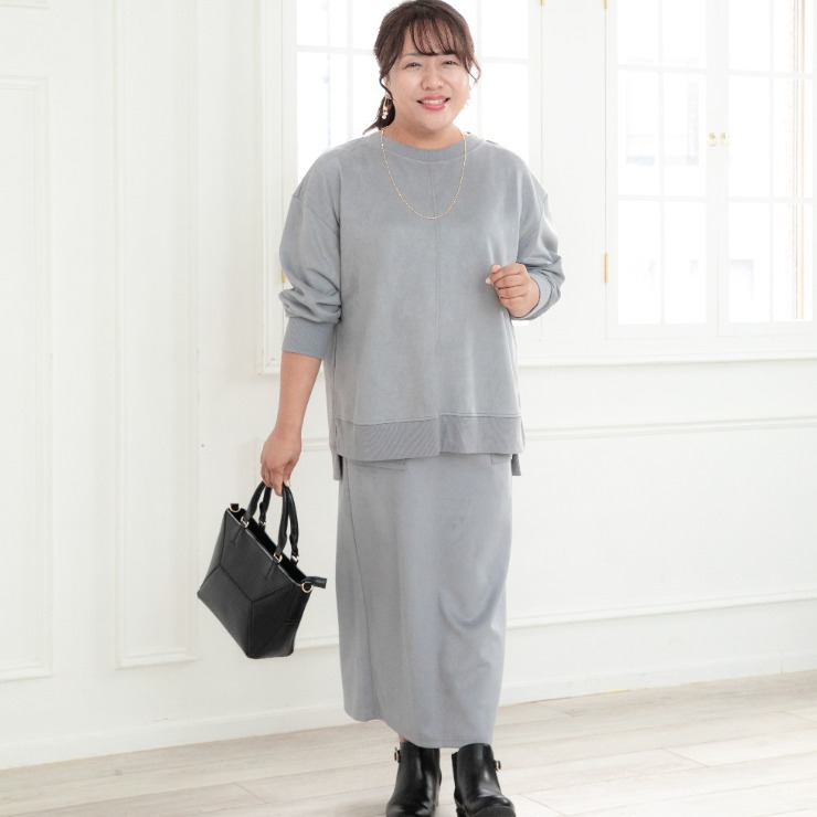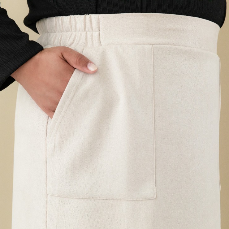 伸縮性のある生地で動きやすく、トップスを選ばず着まわしやすい、すっきり見えるスカートです。