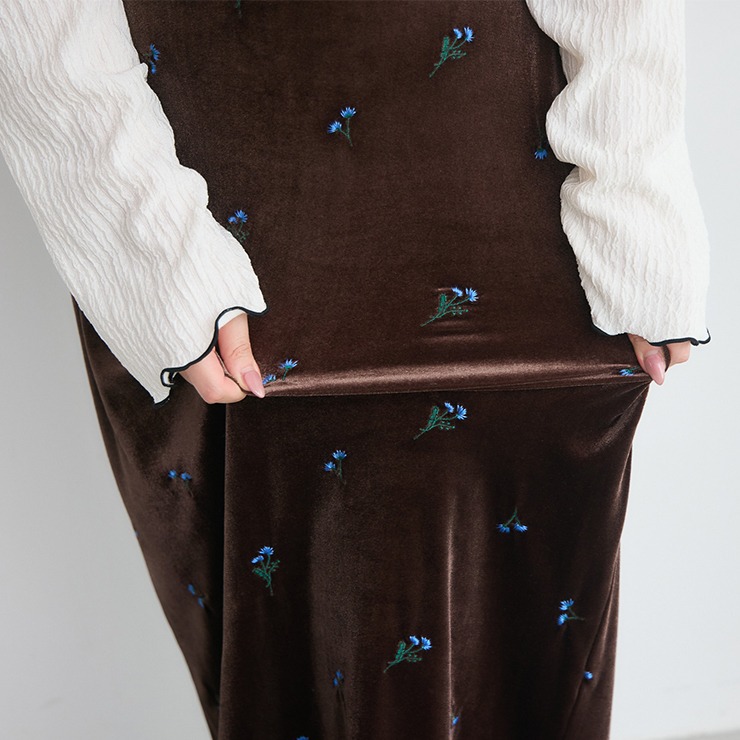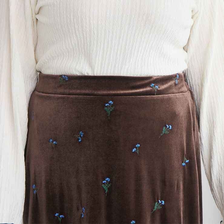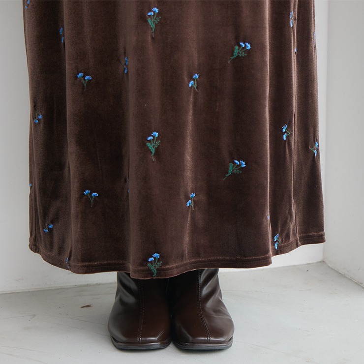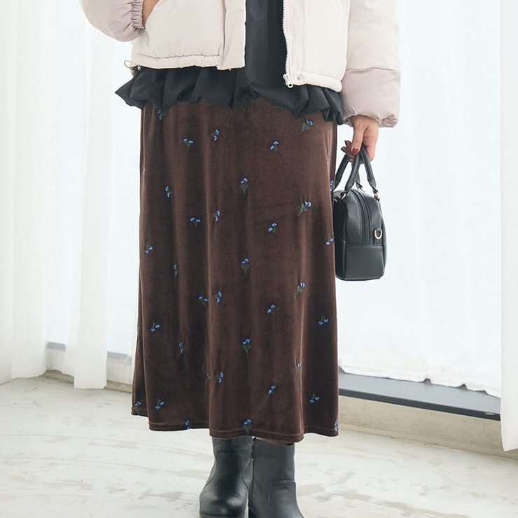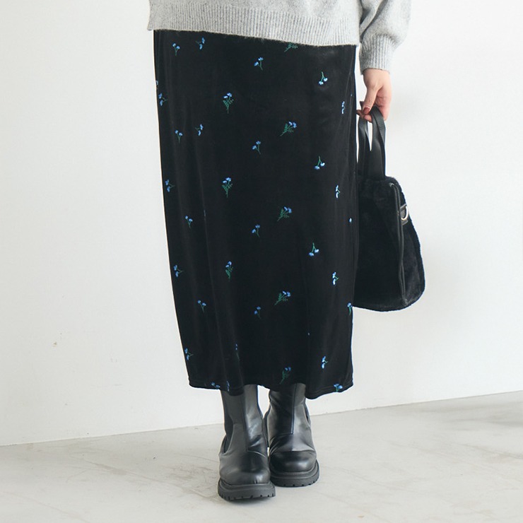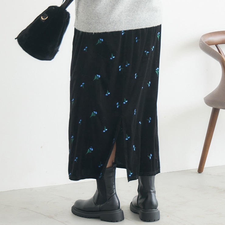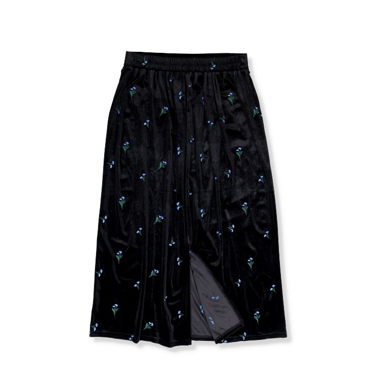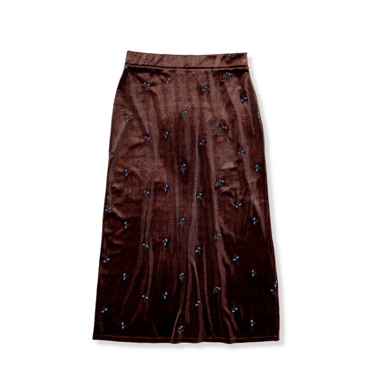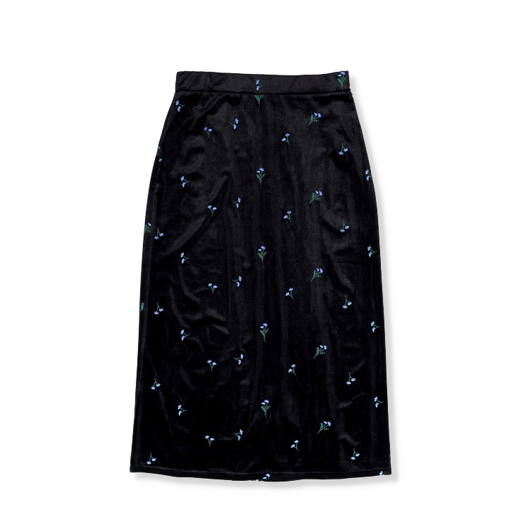花柄刺繍が全体に散りばめられているナロースカートです。