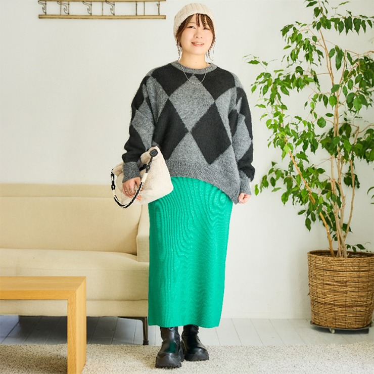 ヒップからストンとまっすぐなラインなので、フィットしすぎず、脚のラインを拾いにくいシルエットのスカートです。幅広のウエストベルトなのでくい込みにくく、お腹周りのぽっこり感を軽減してくれます。さらに、後ろスリットがあるので動きやすく、快適に着用することができるナロースカートです!