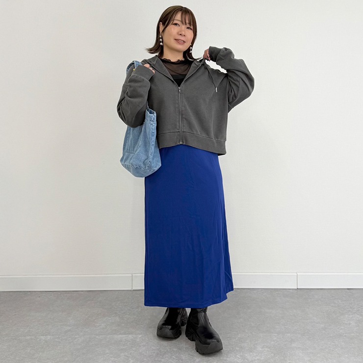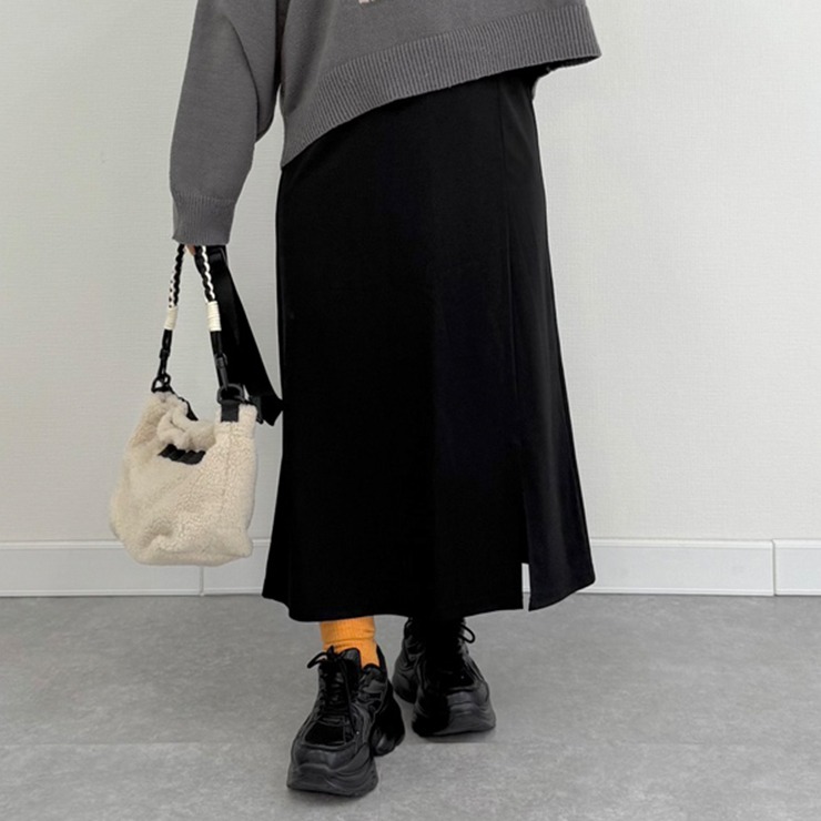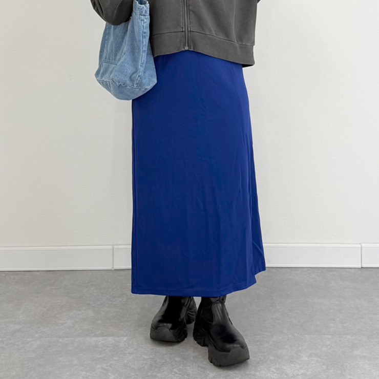 きちんと見えツイルカットソーで、楽に穿けてキレイ見え!ナローシルエットと切り替えライン&スリットで縦ラインを印象付けてスマートみえ!裏地がついて動きやすくシーズンレスに活躍できるスカートです。