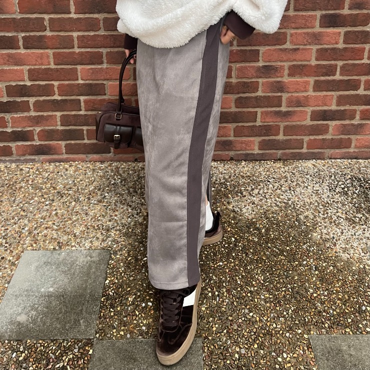 ほんのり微起毛なスエード調の素材とボアラインとの組み合わせが綺麗めからカジュアルなコーデまで幅広く合わせやすい1枚!柔らかい素材が動きやすく履き心地も抜群です◎