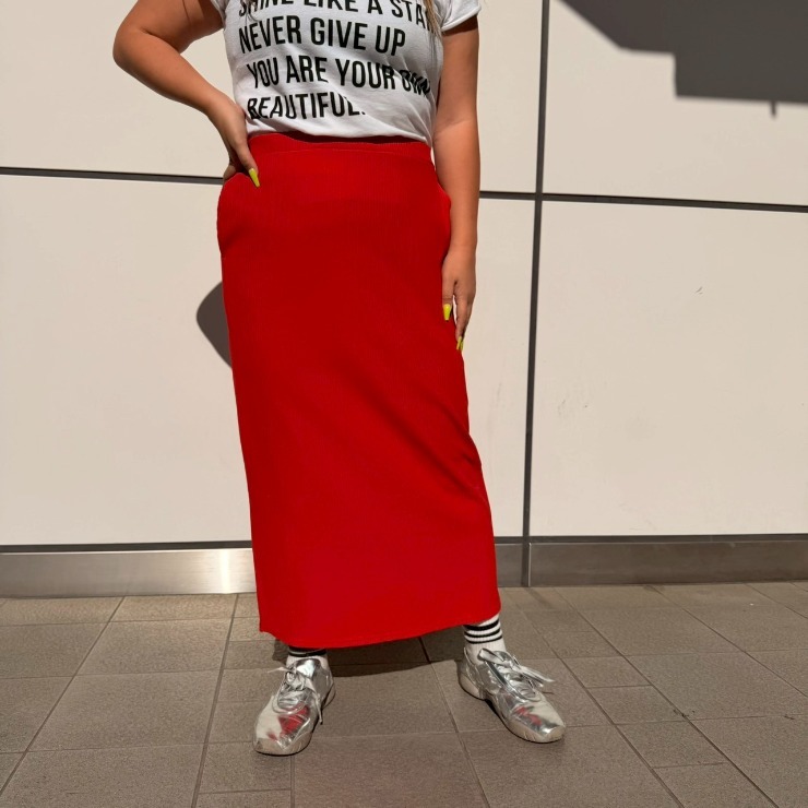 大人っぽさと可愛さを両立できるリブナロースカート。