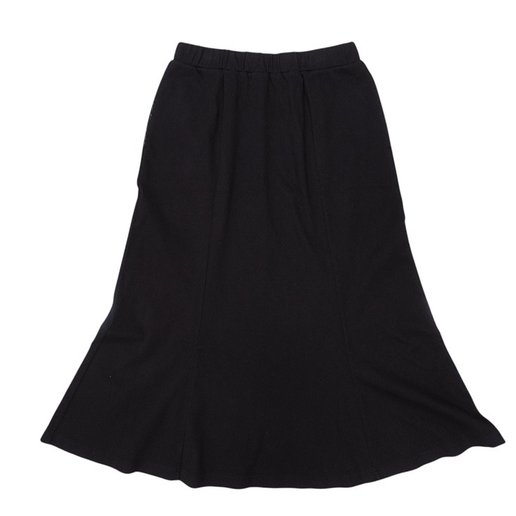 後裾が上がらない仕様にしたマーメイドスカートです!高めの位置からマーメイドラインを作っているので、縦のラインを強調してスマートな印象を与えてくれます♪また、ウエストゴム仕様で楽にはけて快適に過ごせるデニムスカートです!