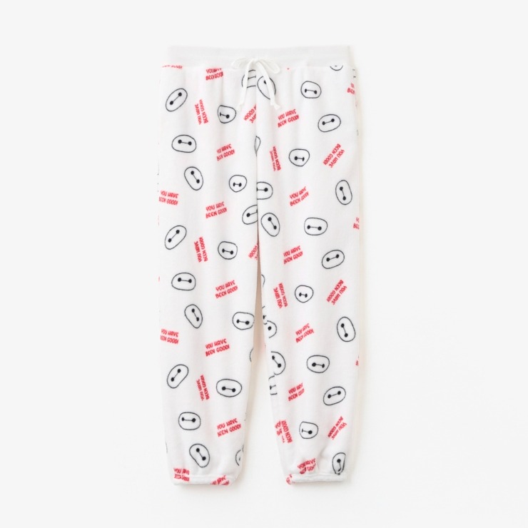 Disney「ベイマックス」総柄プリントデザインのフリースパンツです。