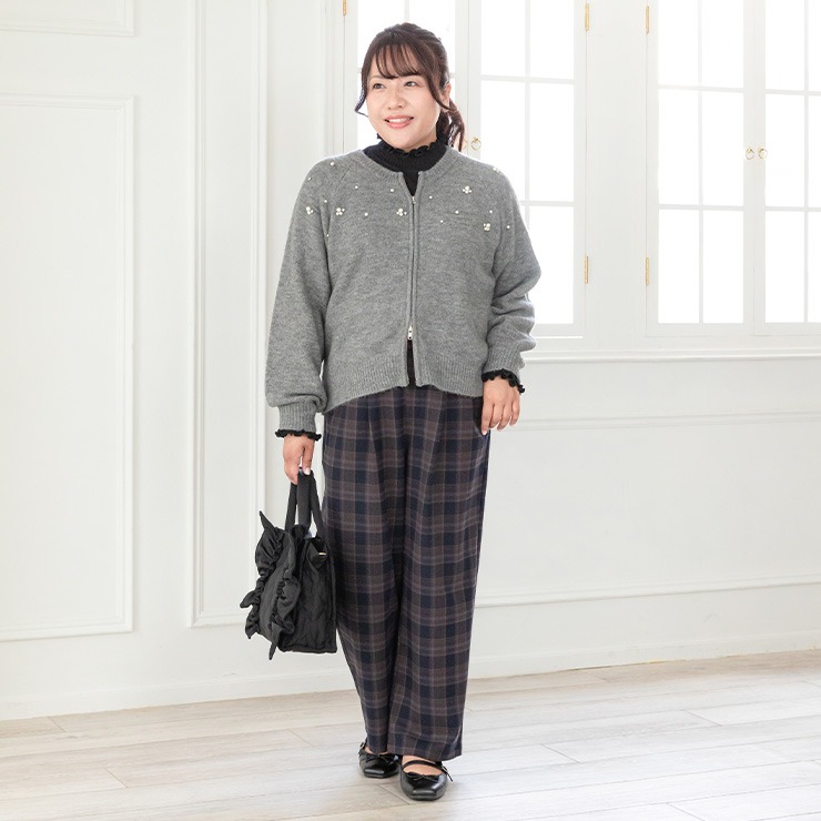 ゆったりストレートに落ちるシルエットで脚のラインがキレイに見え、