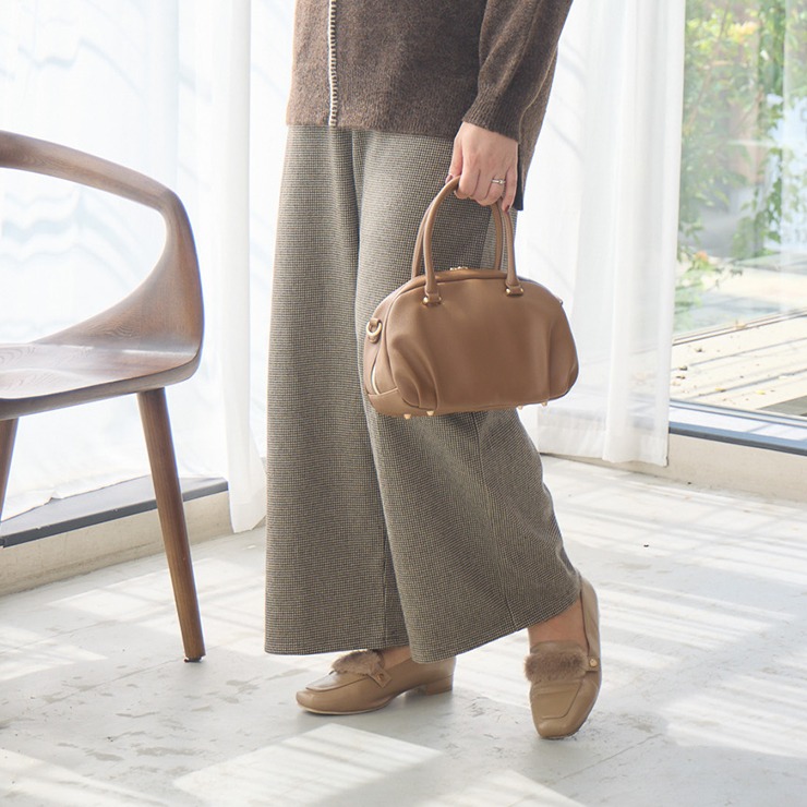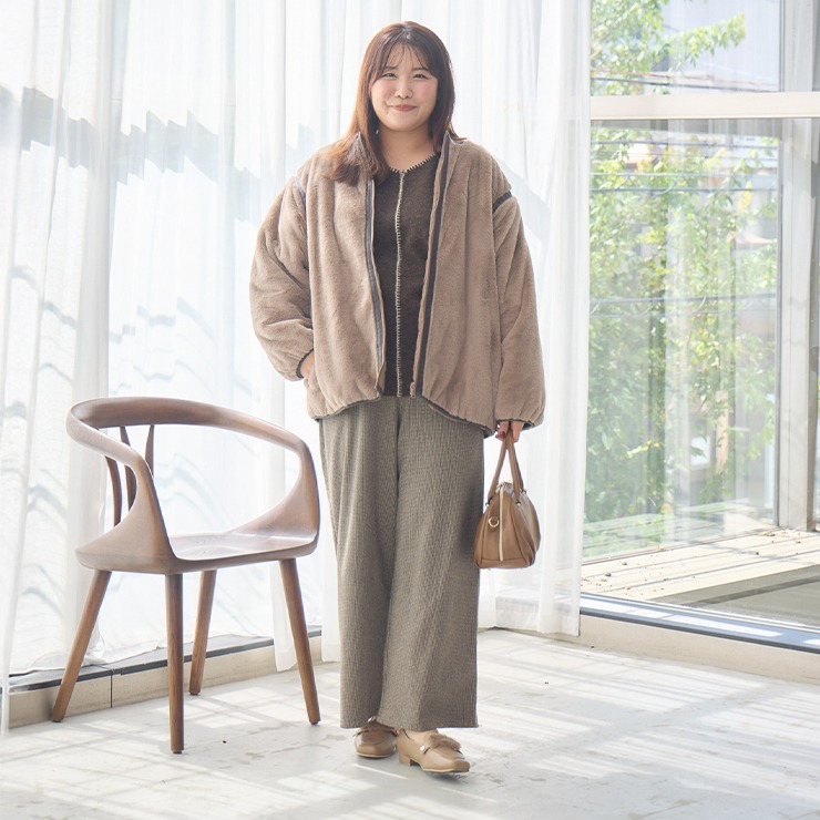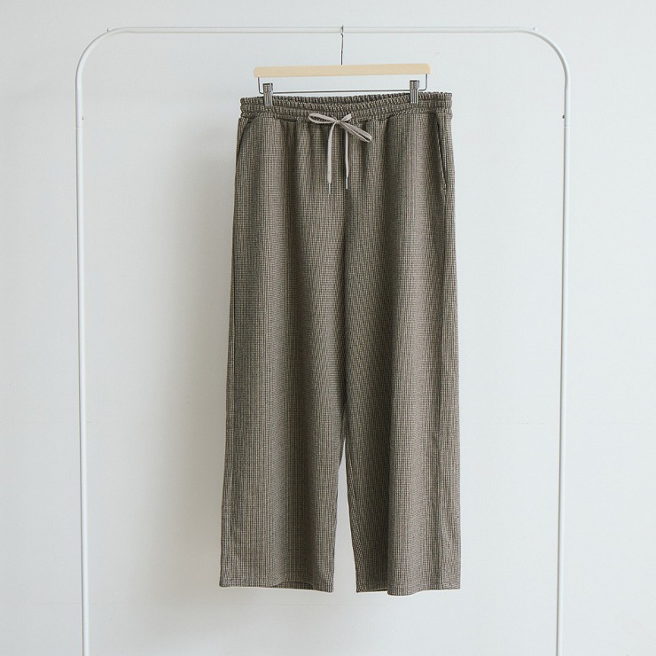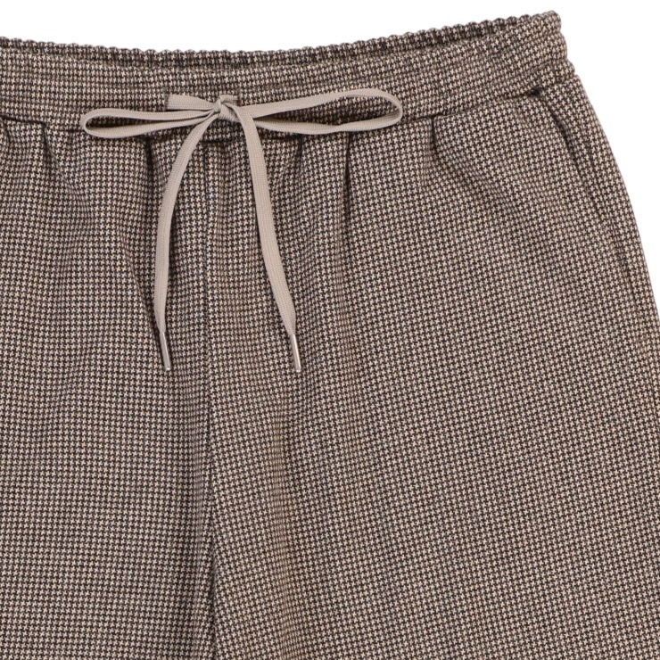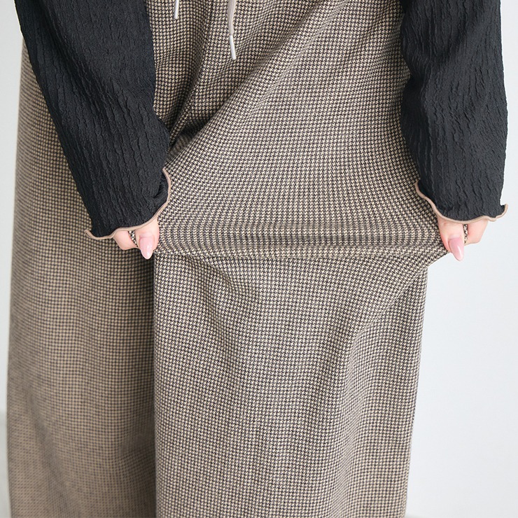 ブラウンの細かいチェック柄で、遠目には無地のように見えるのもポイントです。