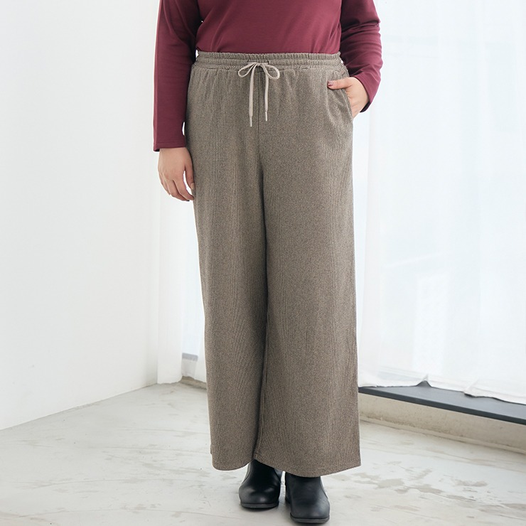 裾に向かって幅が広がる、ゆったりとしたシルエットのワイドパンツです。