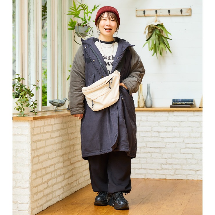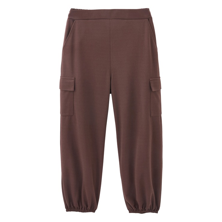 こなれ感のあるカーゴパンツでタテヨコストレッチで動きやすく、裏起毛で肌触りも気持ちいい!シンプルなサイドポケットが体の奥行を分かりにくくしてボリュームダウンさせてくれます。また、ウエストは後ろだけゴム入りなので、前はスッキリフラットなきちんとスタイルで、おなか周りもすっきり見せてくれるカーゴパンツです!