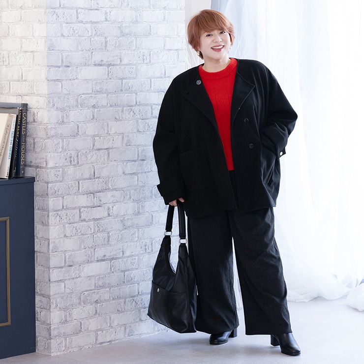 温かみのある起毛素材のジャカード編みのワイドパンツです。