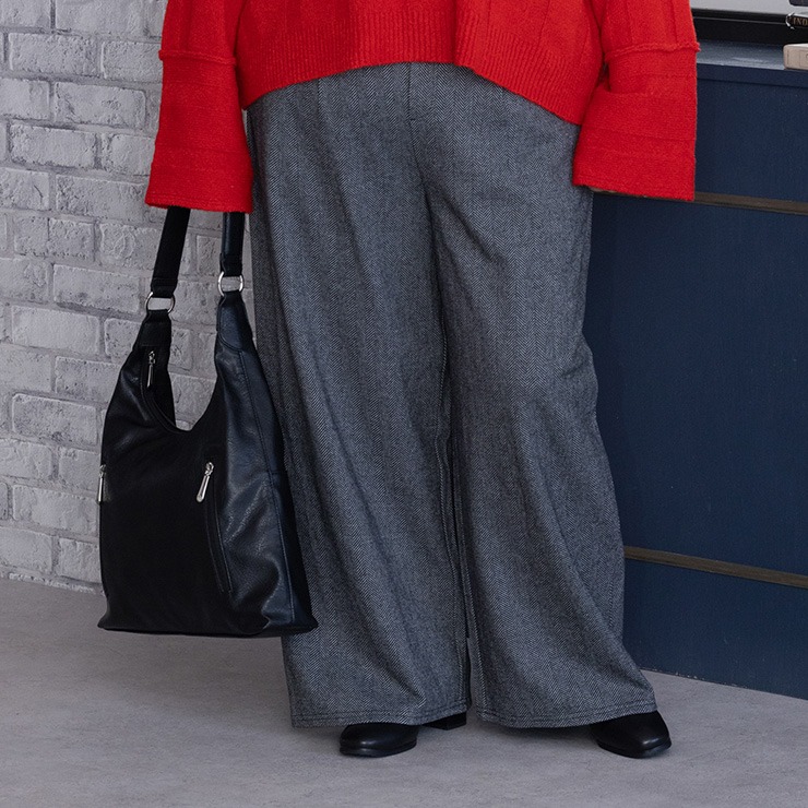 トップスとコーディネートを組みやすいヘリンボーン柄。