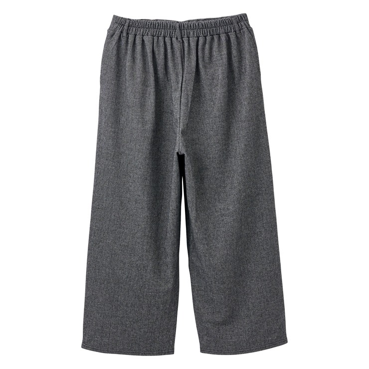温かみのある起毛素材のジャカード編みのワイドパンツです。