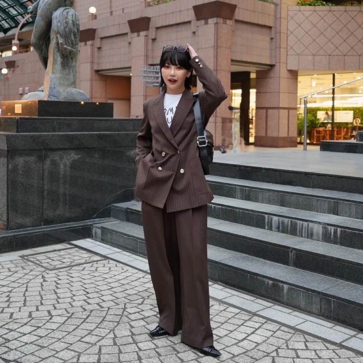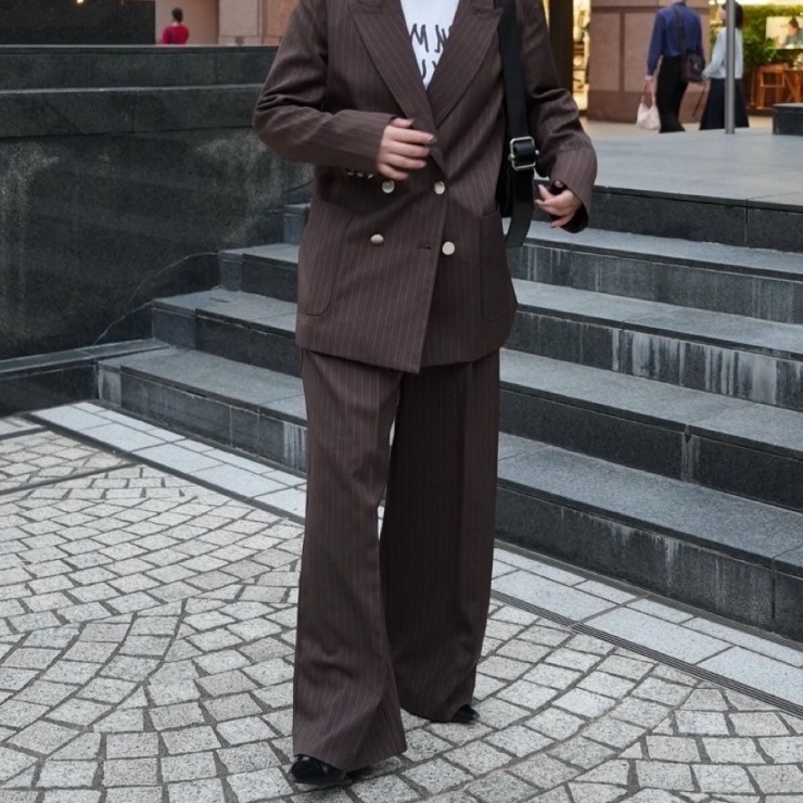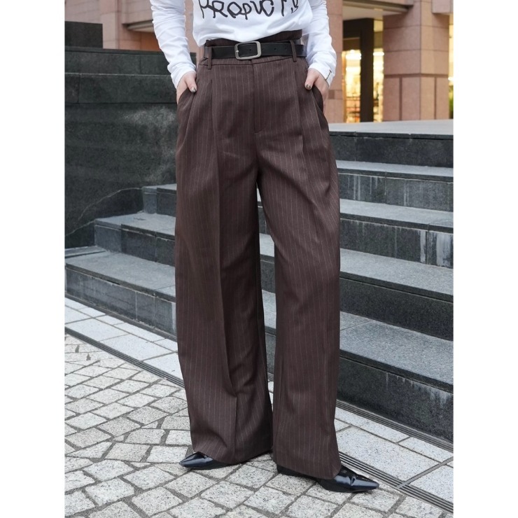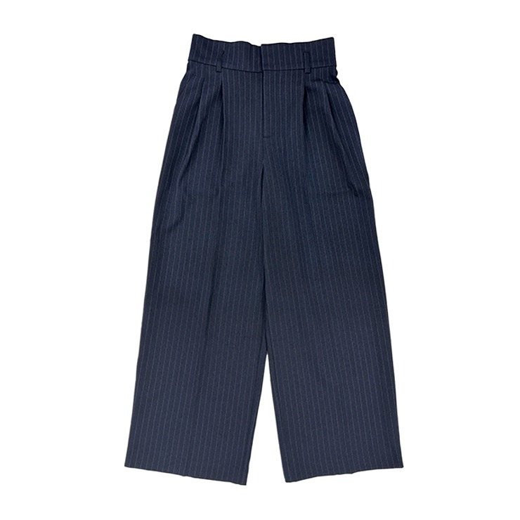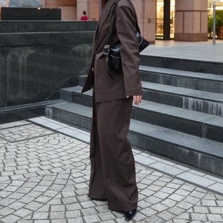 ストライプのジャケットと合わせてセットアップでも着ていただけるワイドパンツ。