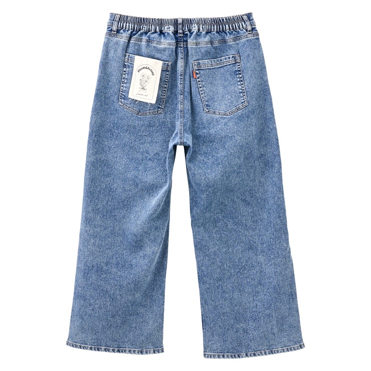 伸縮性のあるデニム素材に、後ろはゴム仕様で楽ちん。