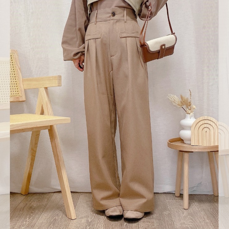 トレンド感のあるワイドシルエットパンツ。フロントのポケットデザインがコーデのアクセントになり、シンプルながらもこなれ感を演出します。