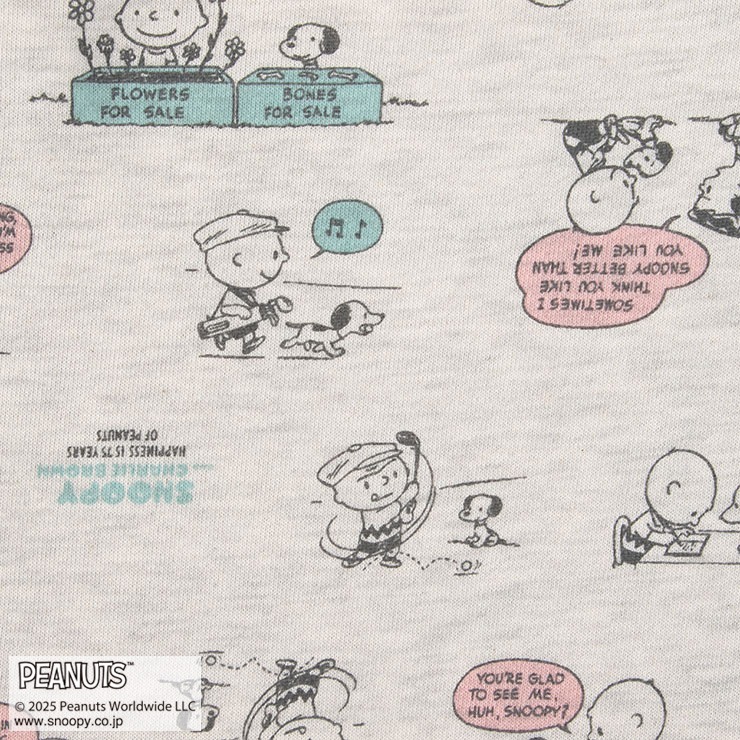「PEANUTS75周年」のグラフィックをデザインしたロングパンツです
