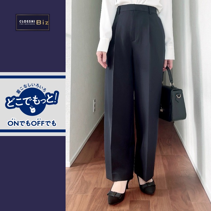脚を長く、きれいに見せるストレートパンツです。