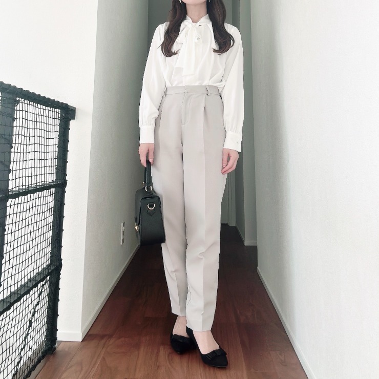 脚をスッキリ、きれいに見せるテーパードパンツです。