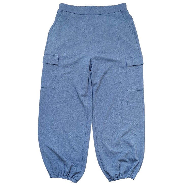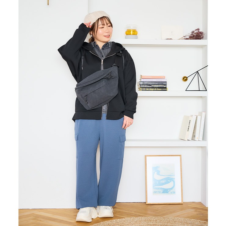 前ウエストはフラット、後ろウエストはゴム仕様なので、おなか周りもすっきり見え!また、シンプルなサイドポケットが体の奥行きをわかりにくくしてくれます。マットな表面感が大人な雰囲気を演出してくれるこなれ感のあるカーゴパンツです!