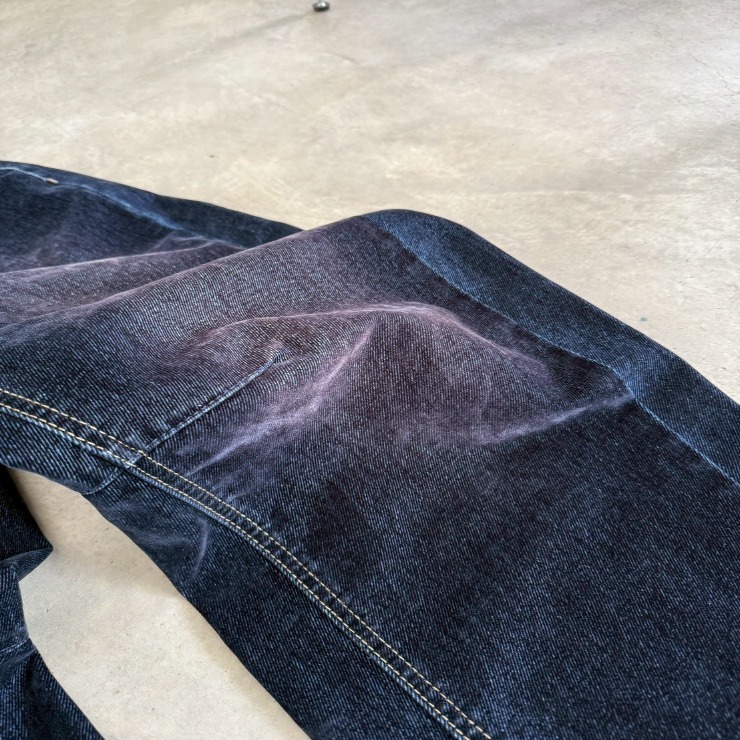 フロッキー加工をしたデニムパンツ。