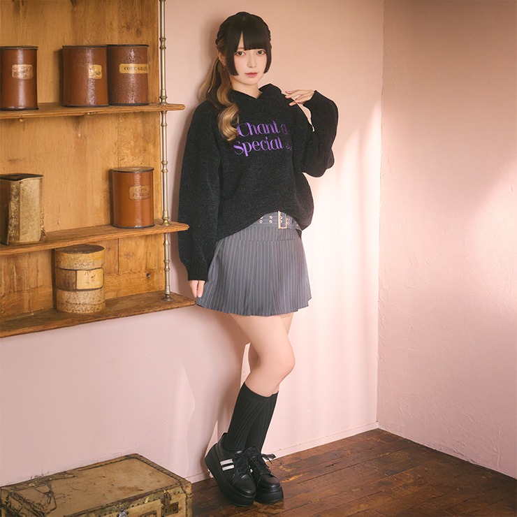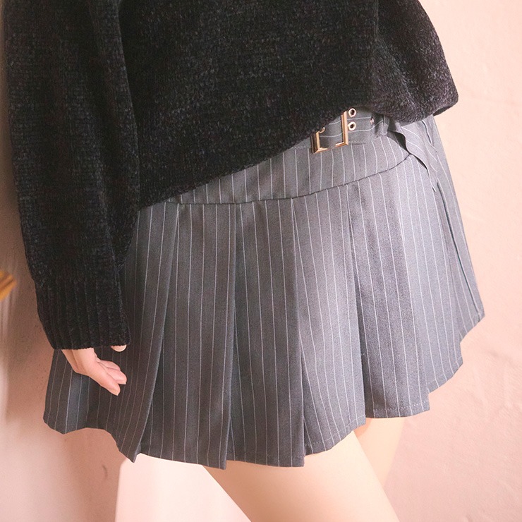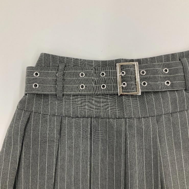 レディース ピンストライププリーツスカート(きゅるりんってしてみて)