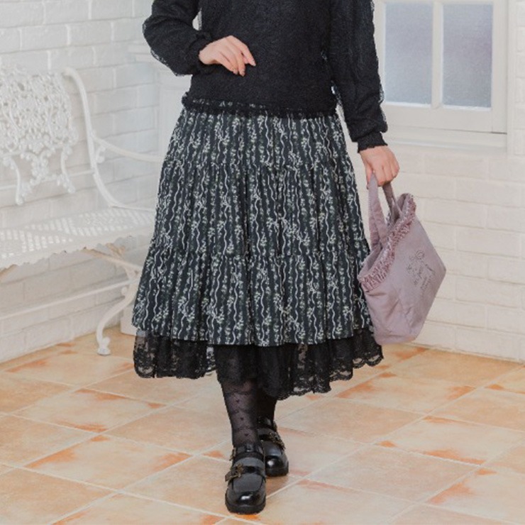 レディース 花柄×リボンプリントリバーシブルスカート(青木美沙子)