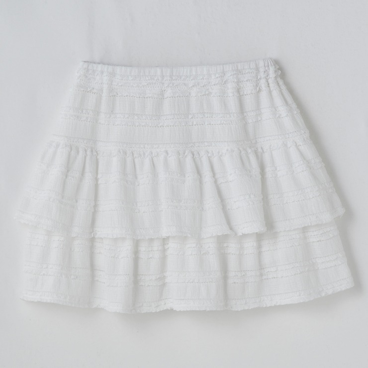 ふんわりとした女の子らしさを引き立てる、ティアードデザインのミニスカート。