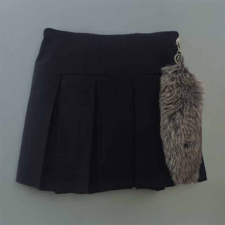 ふわふわのしっぽチャームが目を引く、トレンド感たっぷりのプリーツスカート♪
