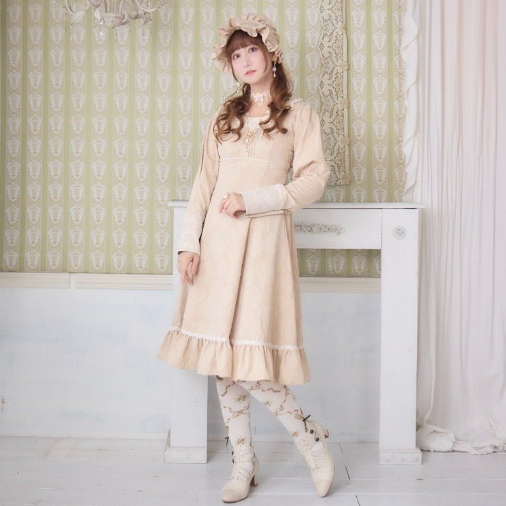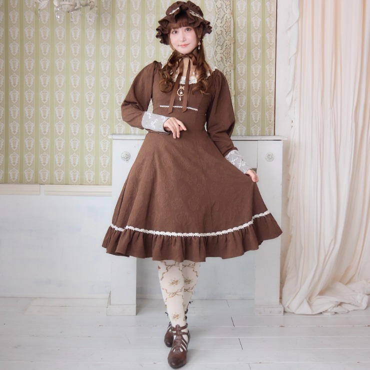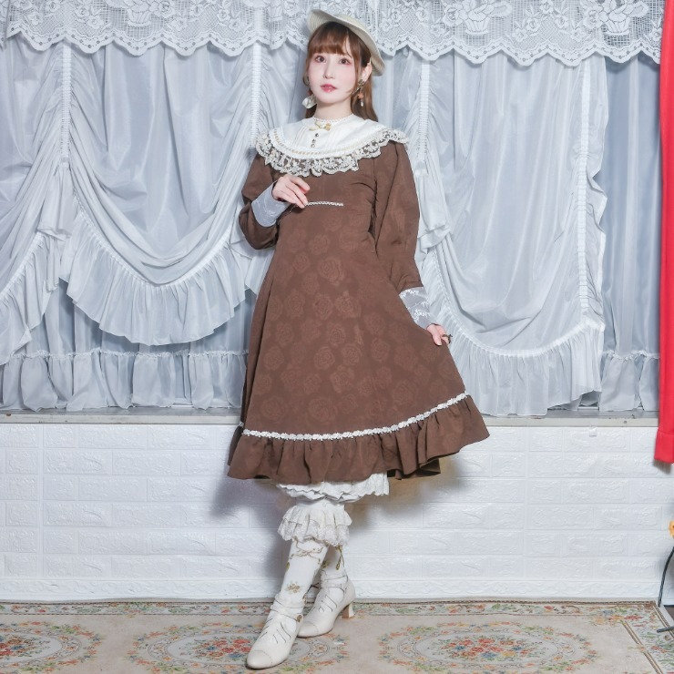 クラシカルな雰囲気のある配色と花柄ジャカード生地がかわいいワンピースです!