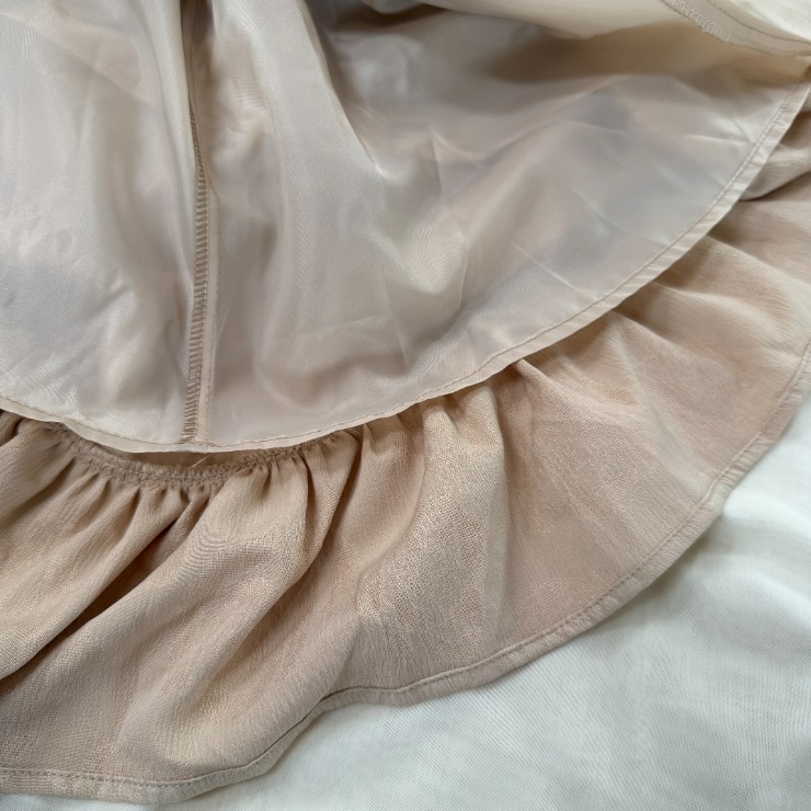 後ろの結びリボンで調節いただくことによりウエストラインが