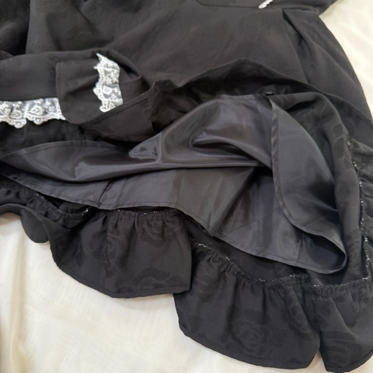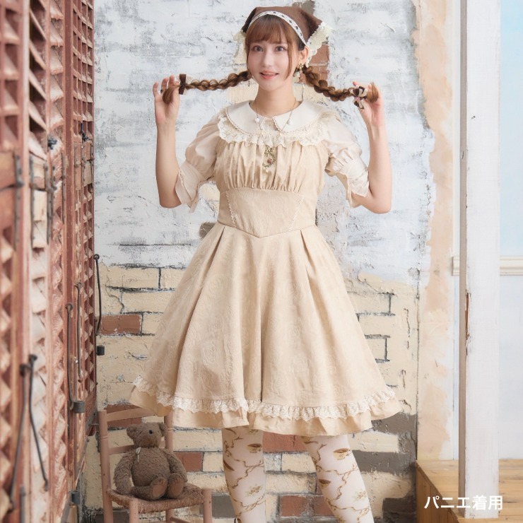 胸元のギャザーによるボリューム感にコルセット風切り替えが