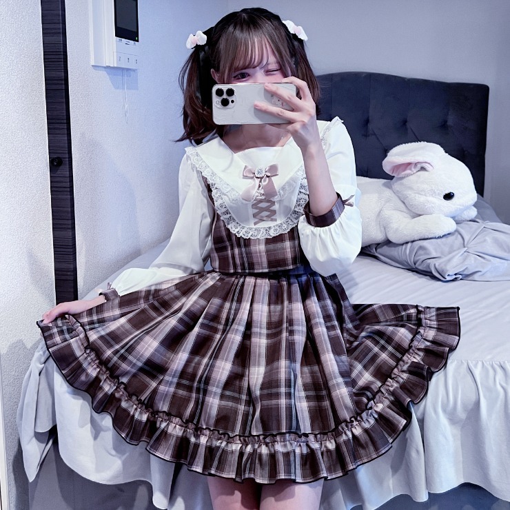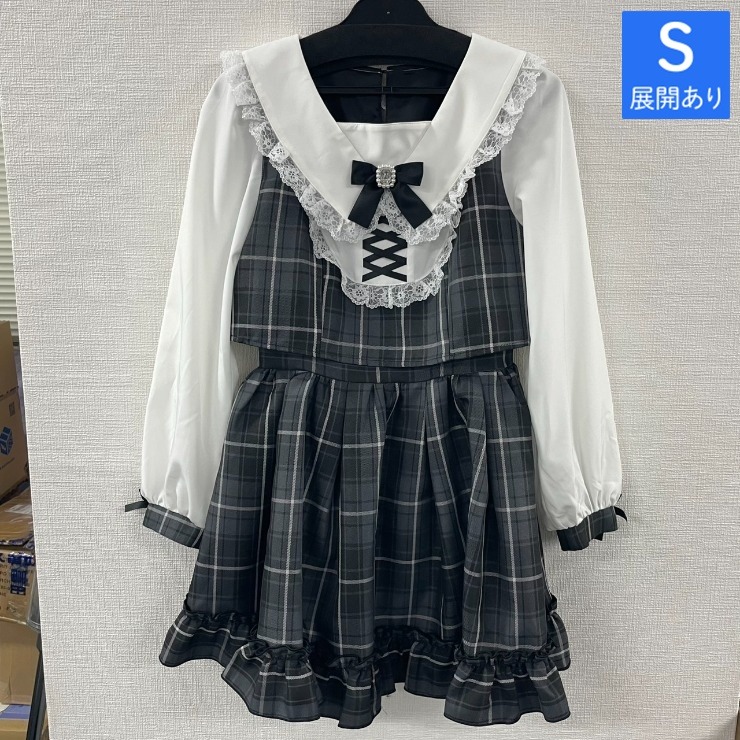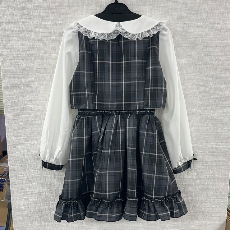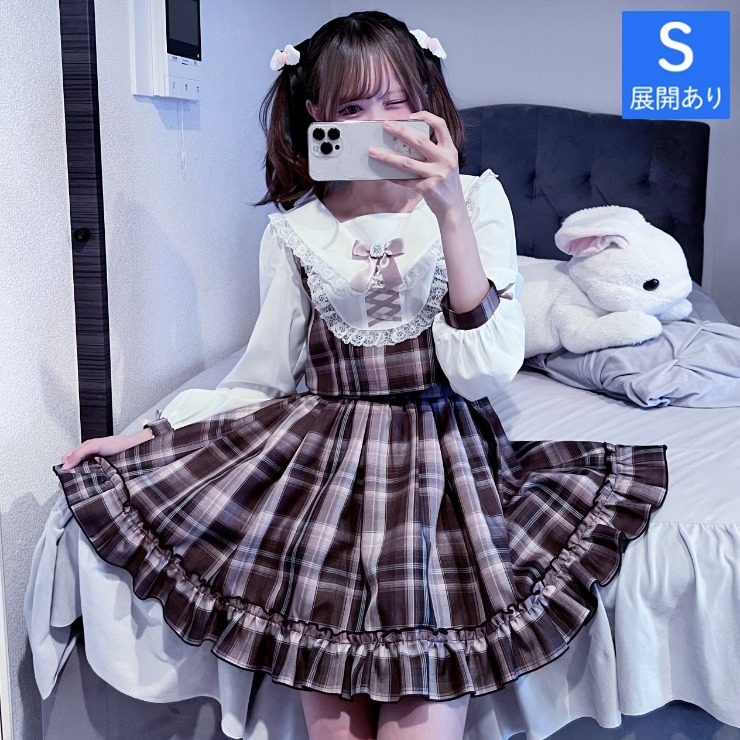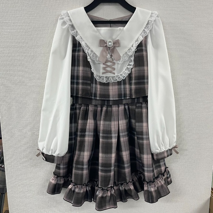 レディース レースアップフリル衿チェック柄ワンピース(サノカナメ)