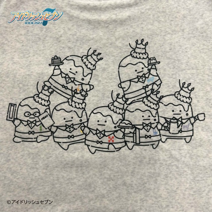 胸ポケットには<IDOLiSH7>のゴールドのラメプリント、背中には王様プリンのデザインが施されています。