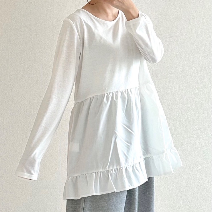 布帛素材で切り替えた、重ね着用のプルオーバー