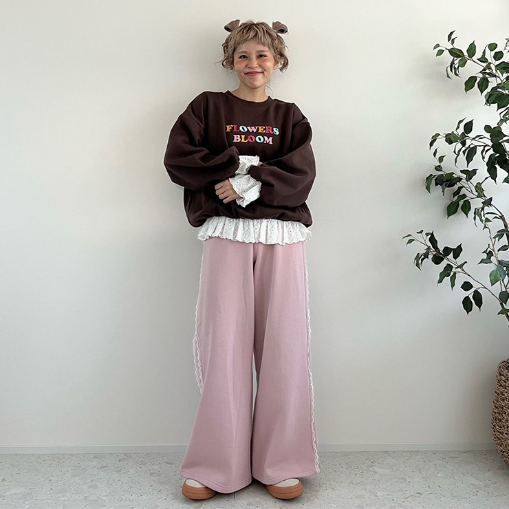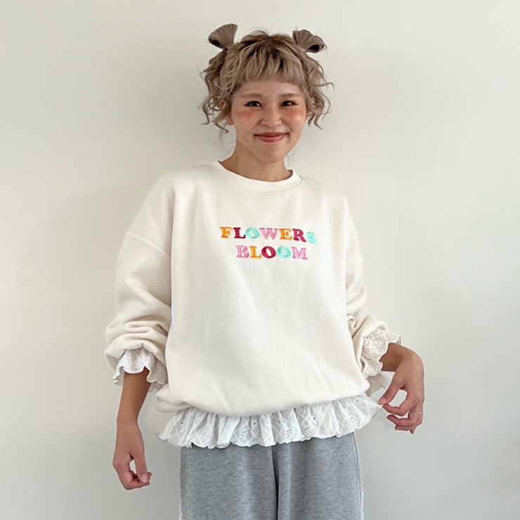 レディース カラフルロゴ刺繍レース使いプルオーバー(ayano)