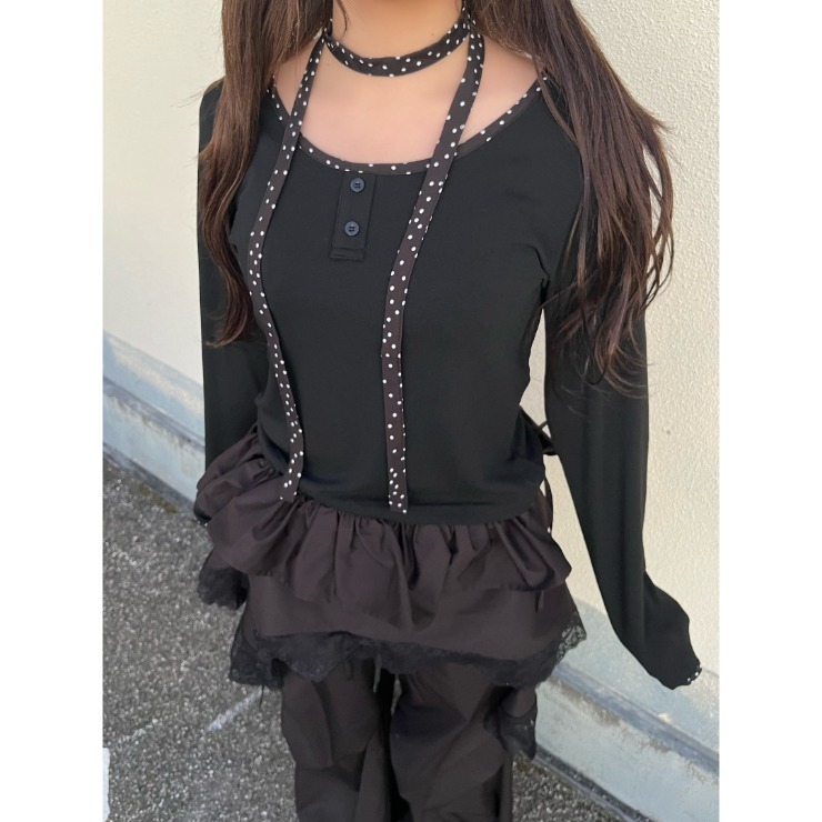 レディース ドット柄タイ付きプルオーバー(桃華姉妹)