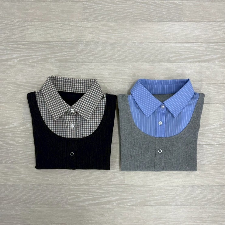 レディース シャツ襟レイヤードプルオーバー(桃華姉妹)