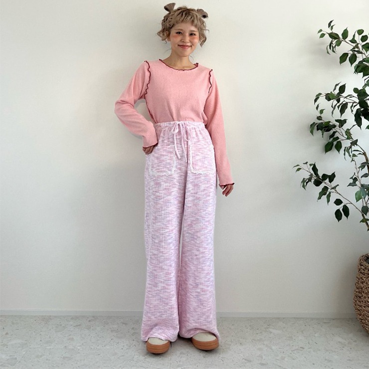 アクセントにもなりながら、淡いカラーなのでコーディネートも組みやすいパンツです。