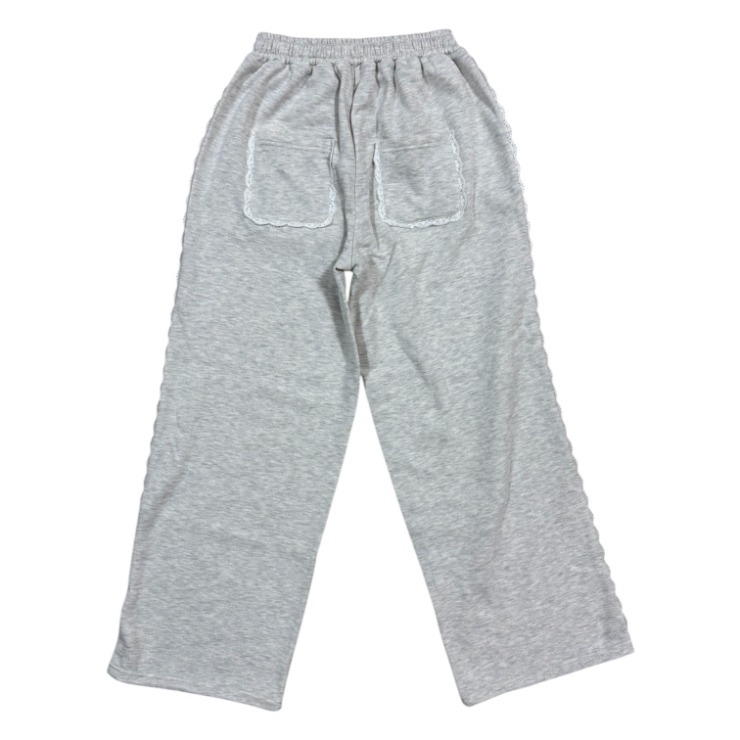 インフルエンサー「ERIKA」とのコラボ商品です。サイドと後ろポケット周りにレースがついており、ガーリーな雰囲気たっぷりのスウェットパンツです♪