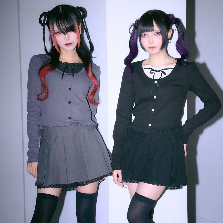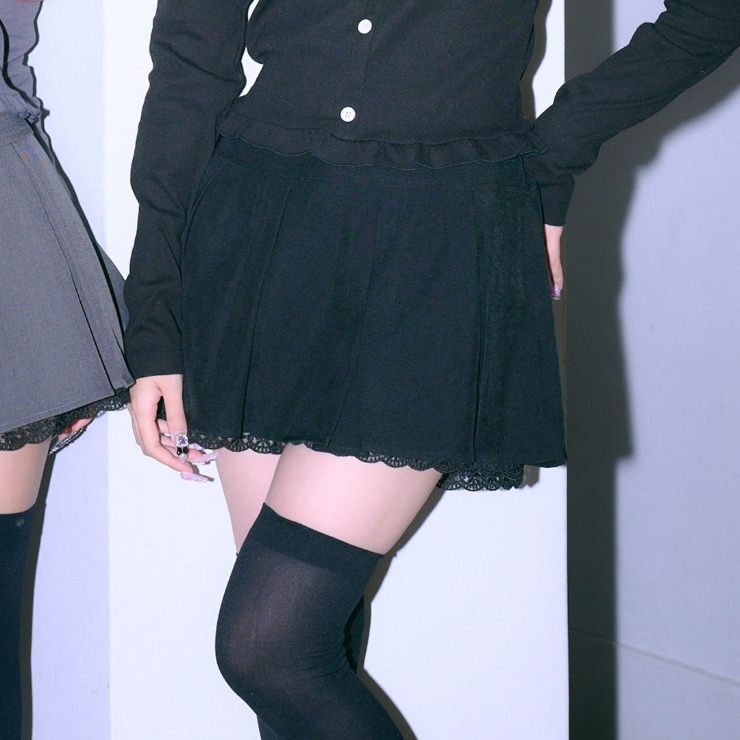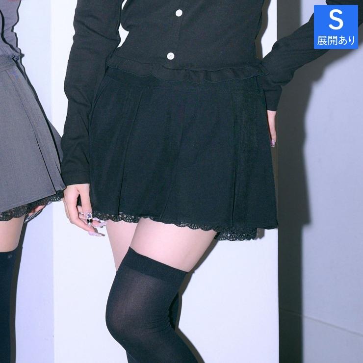 プリーツスカートの裾にレースを重ねたガーリーなデザイン。