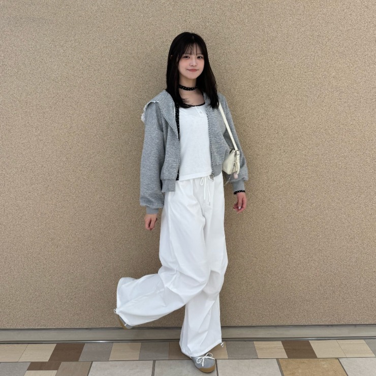 同素材のラップスカートと組み合わせればトレンドスタイリングもバッチリです!