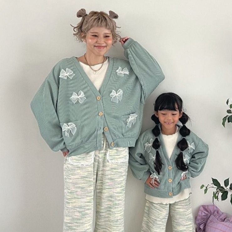 リボンモチーフがポイントのガーリーなカーディガン。