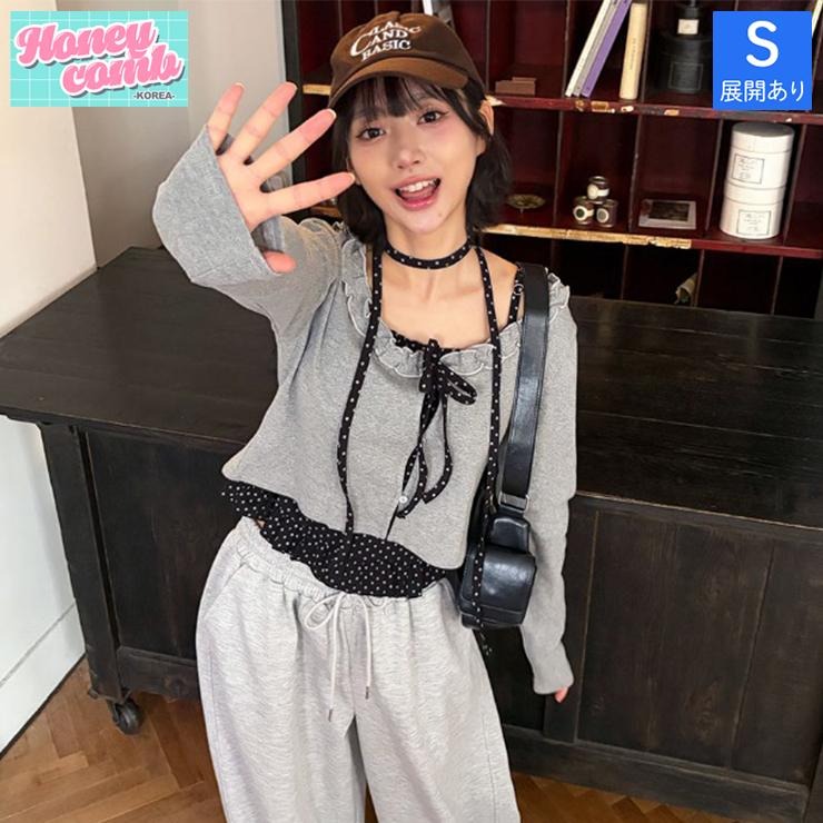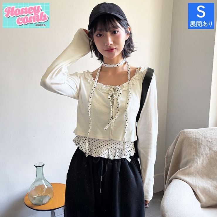 レディース 襟フリルリボンカーディガン(ハニカム)