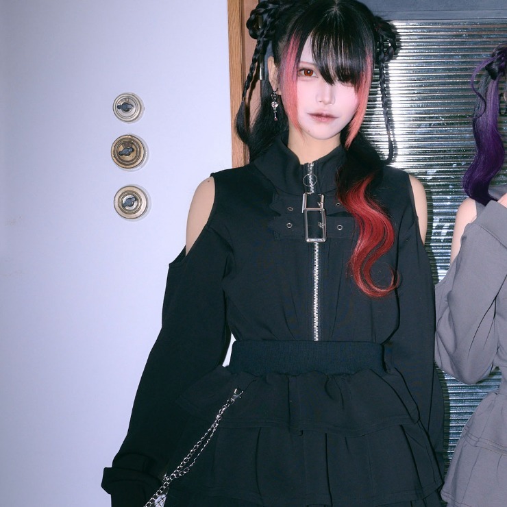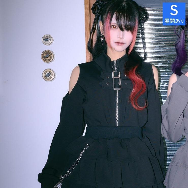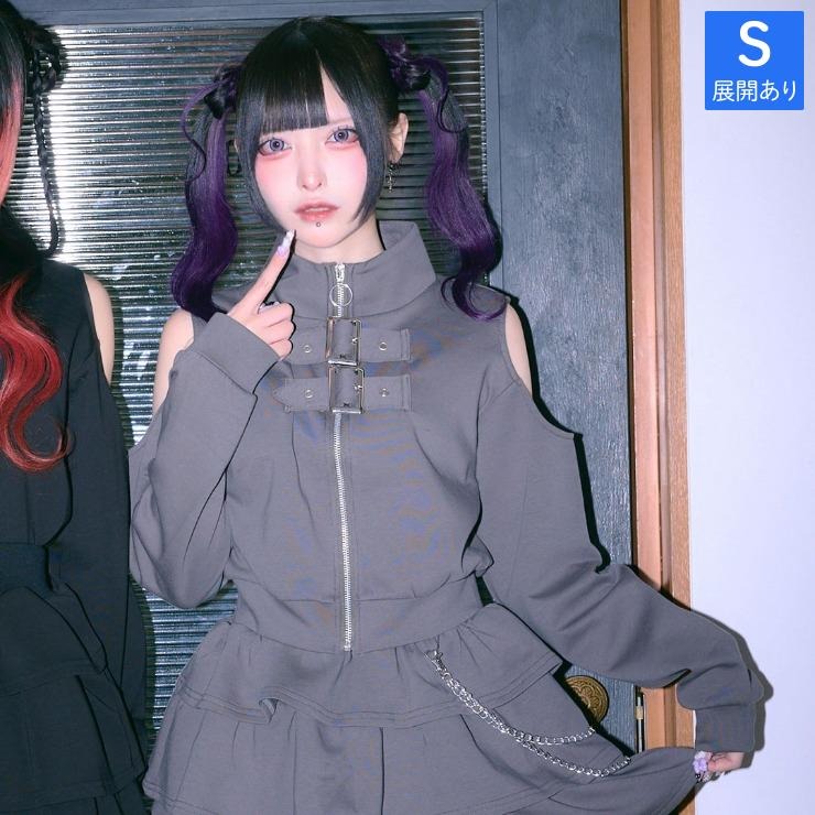 肩開きデザインとベルトディテールが印象的なスウェットブルゾン。