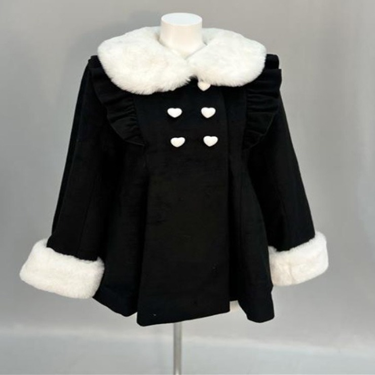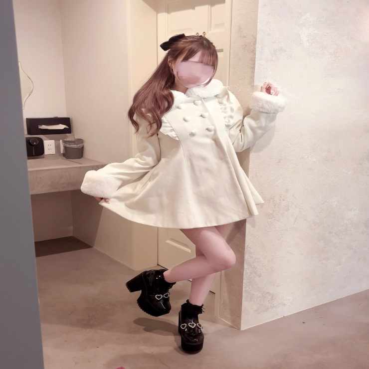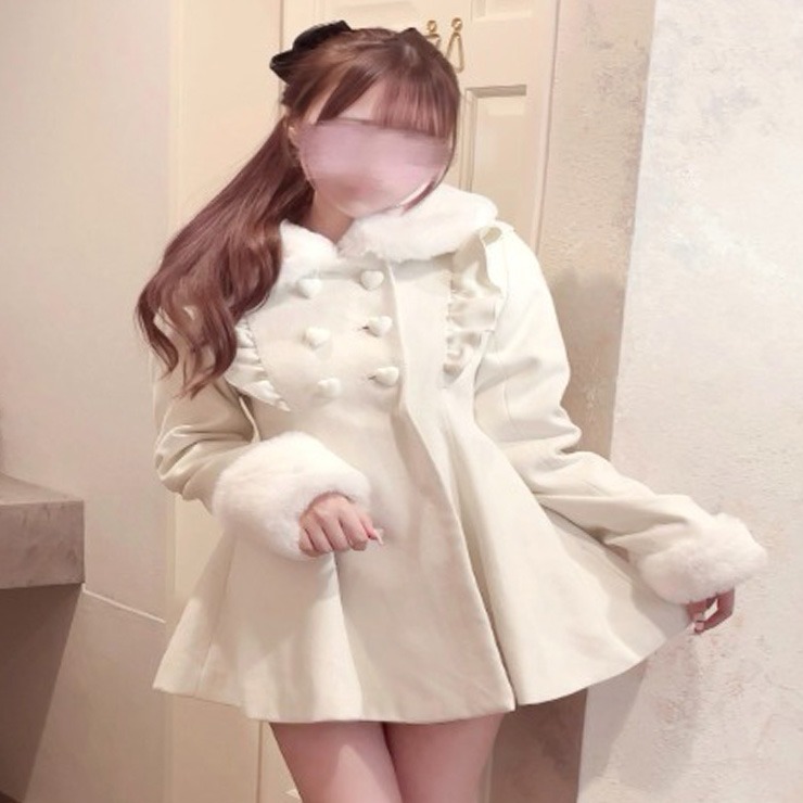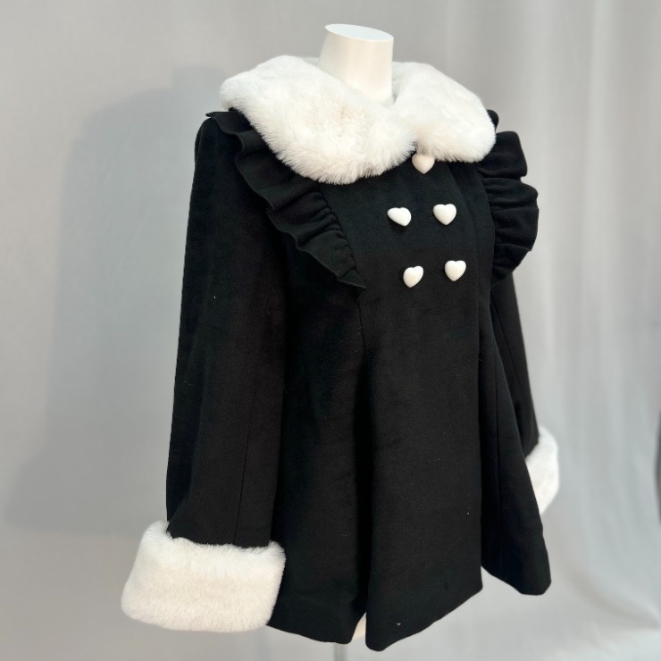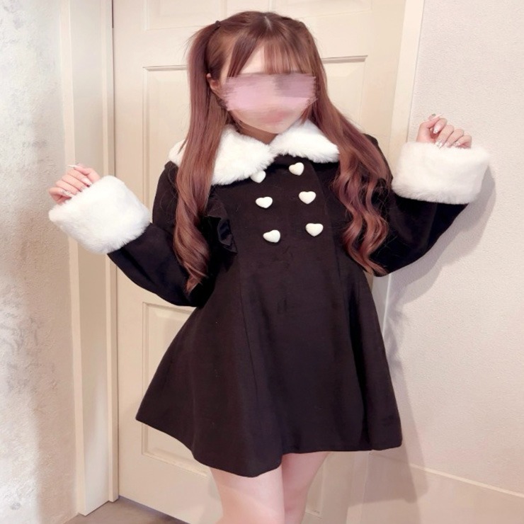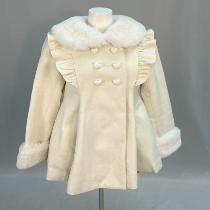 ハートボタンがポイントの愛らしさたっぷりコート。
