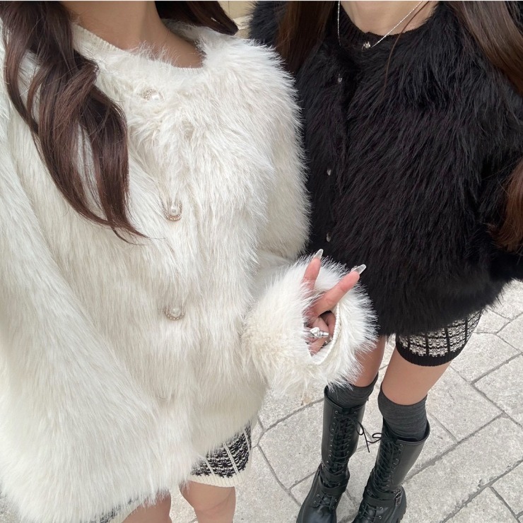 ふんわりとした毛足の長さが魅力の、上品なノーカラージャケットが登場!