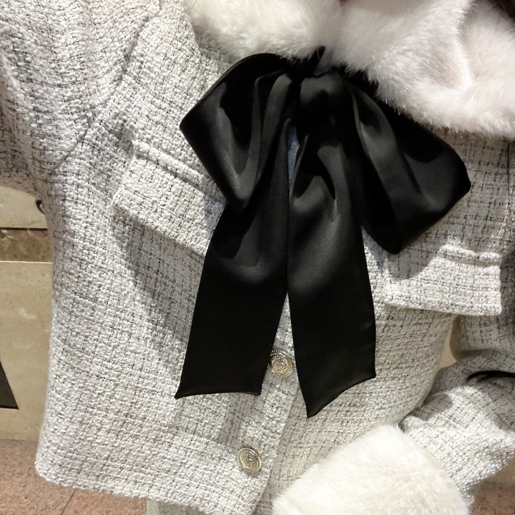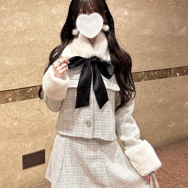 レディース ティペット付きツイード調ノーカラージャケット(nako)