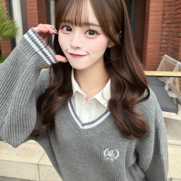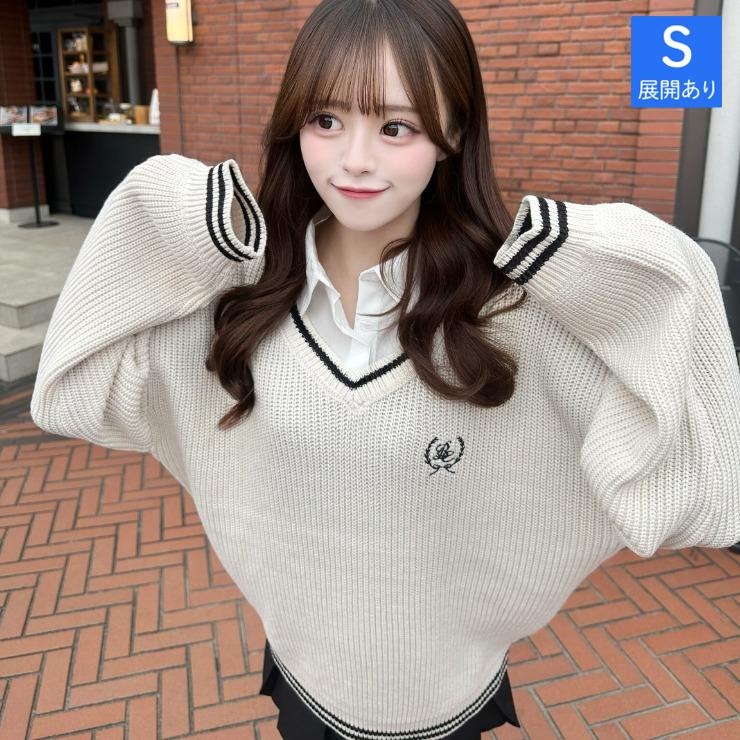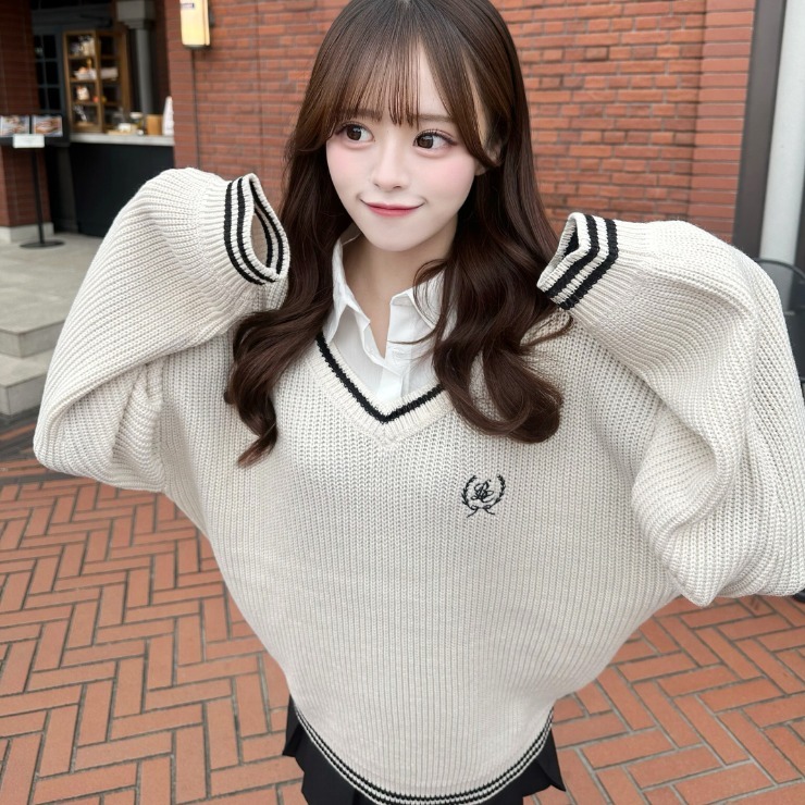 シャツ襟がドッキングになったセーター。一枚でコーディネートが完成する便利なアイテムです。