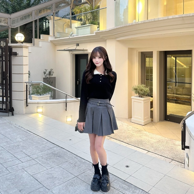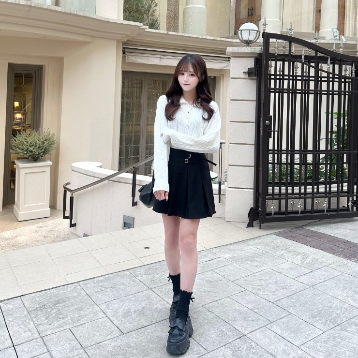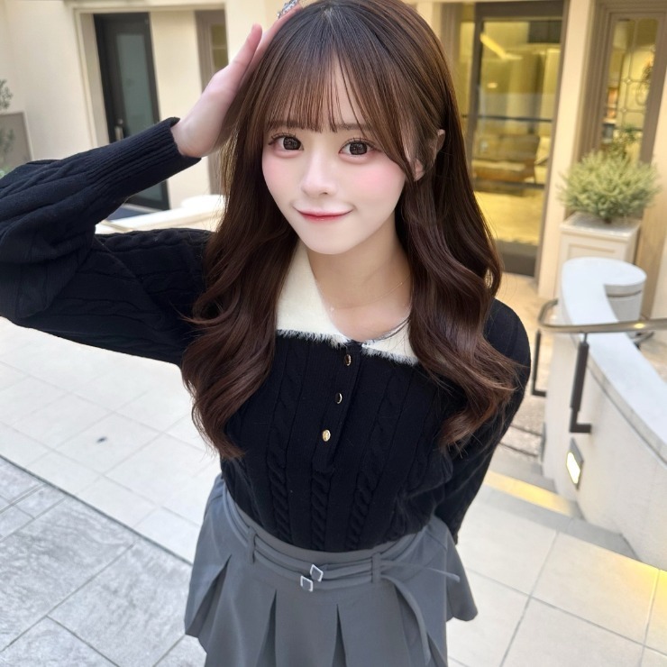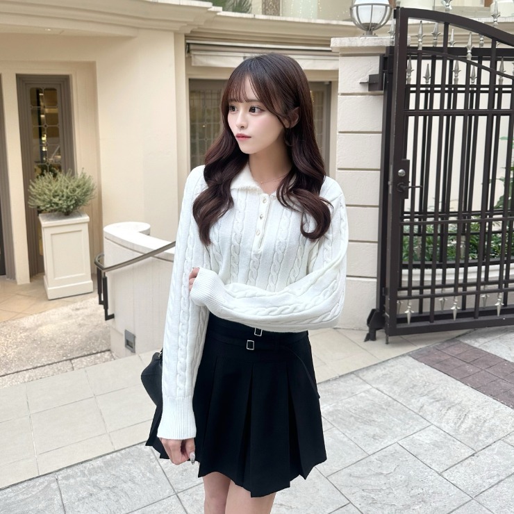 柔らかい風合いのニットを襟シャギーがポイントのポロです。